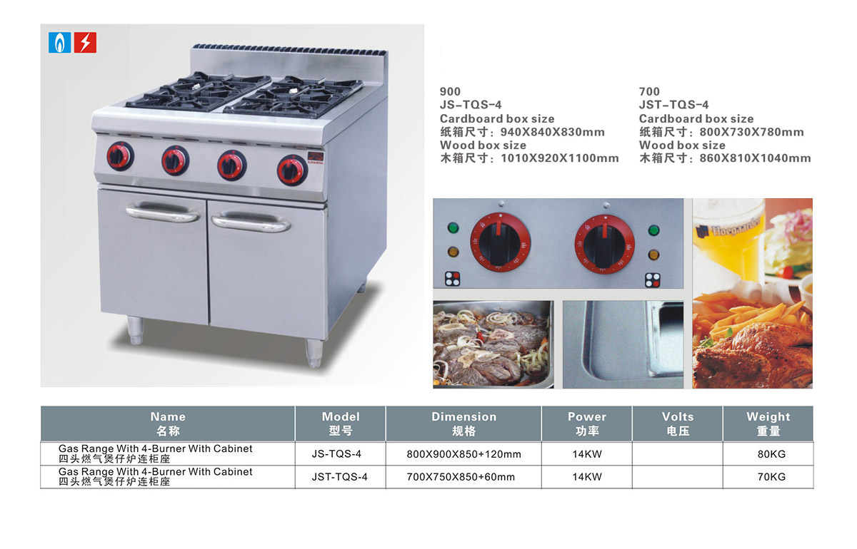 产品名:四头燃气煲仔炉连柜座