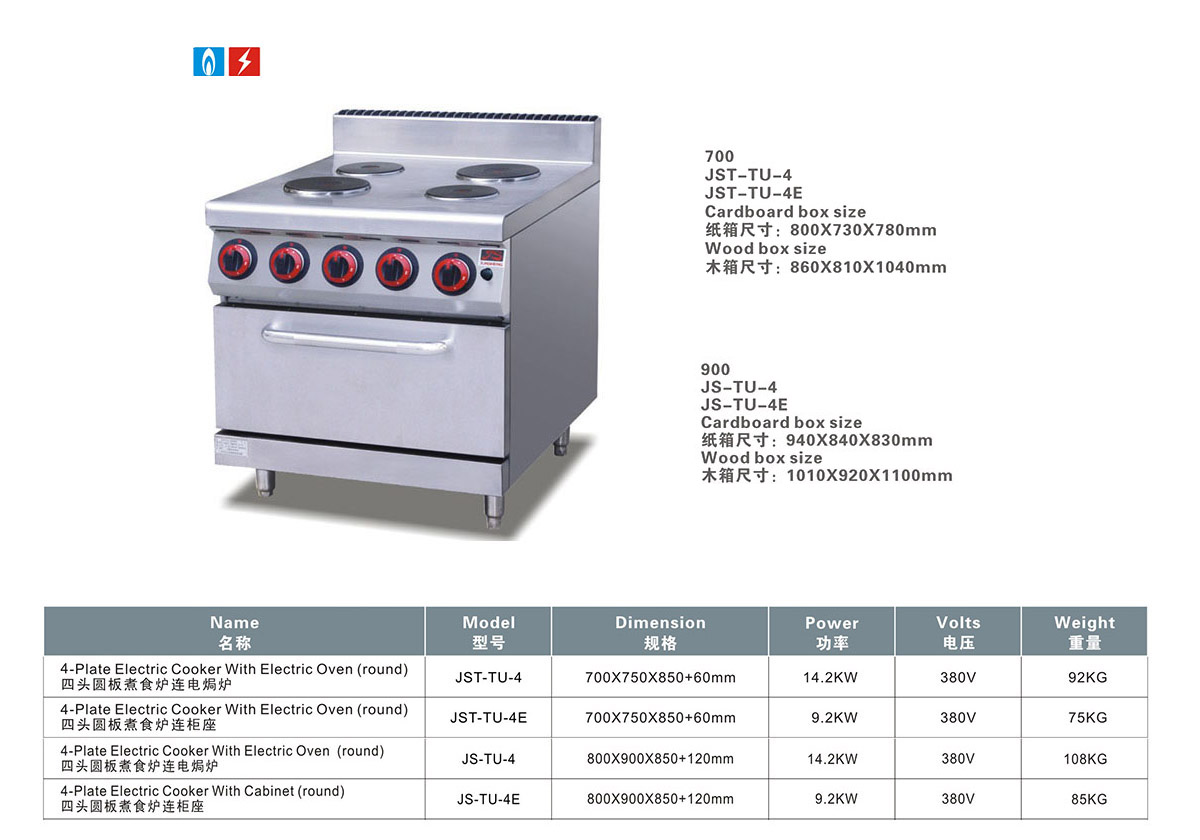 产品名:四头圆板煮食炉连电焗炉