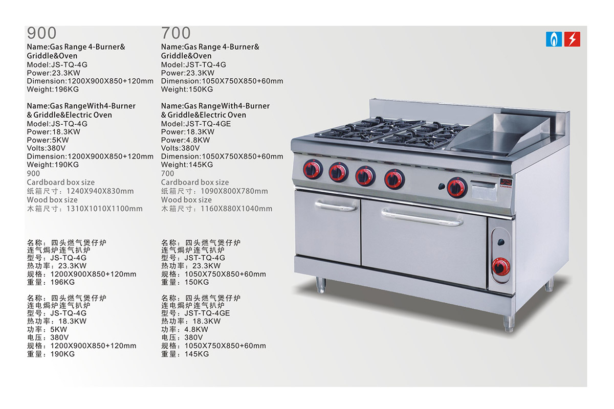 产品名:四头燃气煲仔炉连焗炉连气扒炉