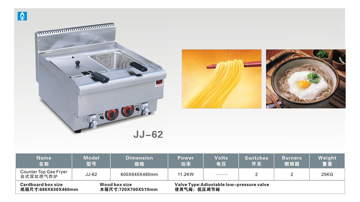 产品名:台式双缸燃气炸炉(JJ-62)