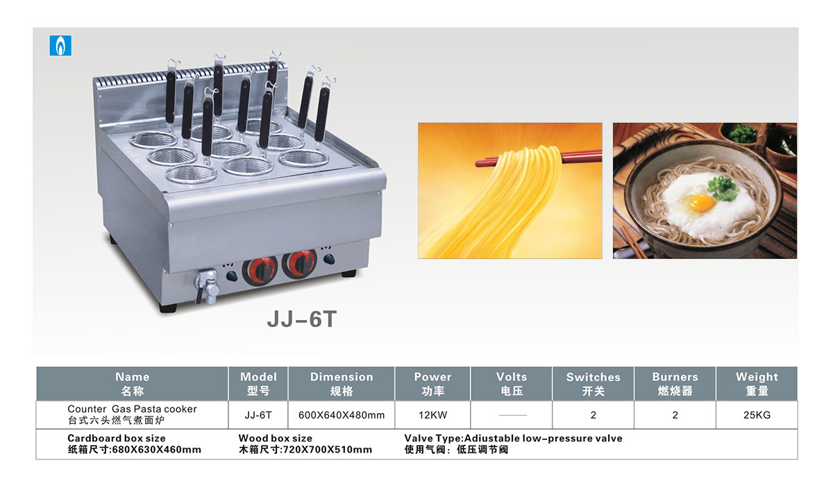 产品名:台式六头燃气煮面炉(JJ-6T)