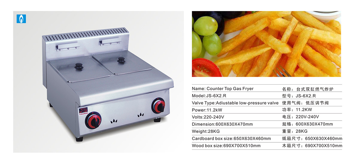 产品名:台式双缸燃气炸炉(JS-6X2.R)