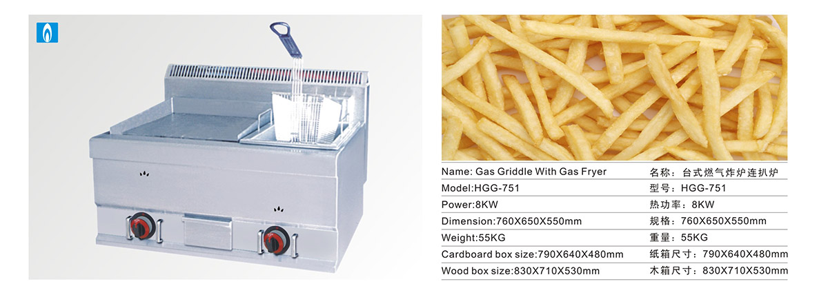 产品名:台式燃气炸炉连扒炉(HGG-751)