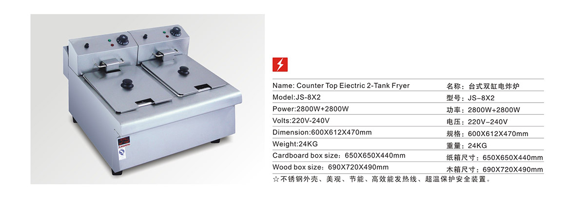 产品名:台式双缸电炸炉(JS-8X2)