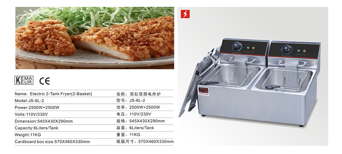 产品名:双缸双筛电炸炉(JS-6L-2)