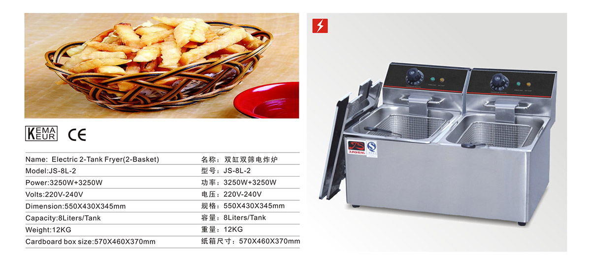 产品名:双缸双筛电炸炉(JS-8L-2)
