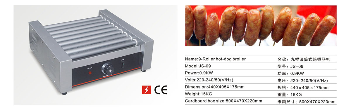 产品名:九棍滚筒式烤香肠机(JS-09)