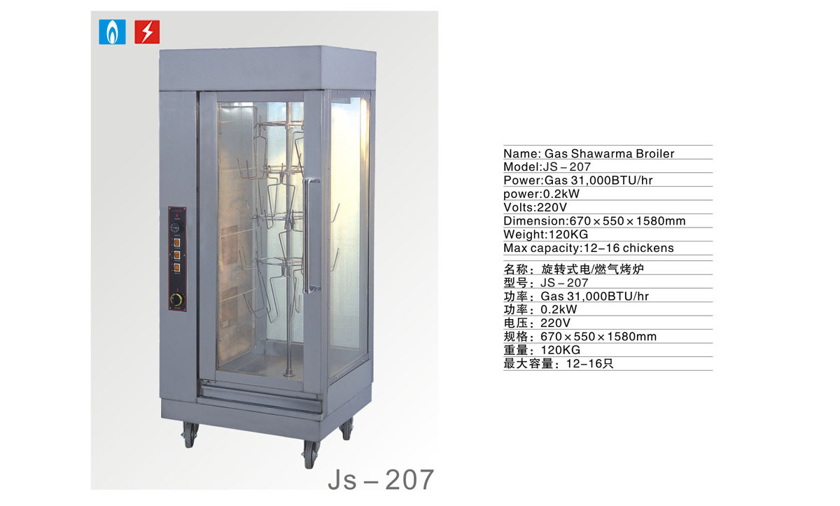 当前位置:Home » Products » Rotisserie » Gas Shawarma Broiler(JS-207)